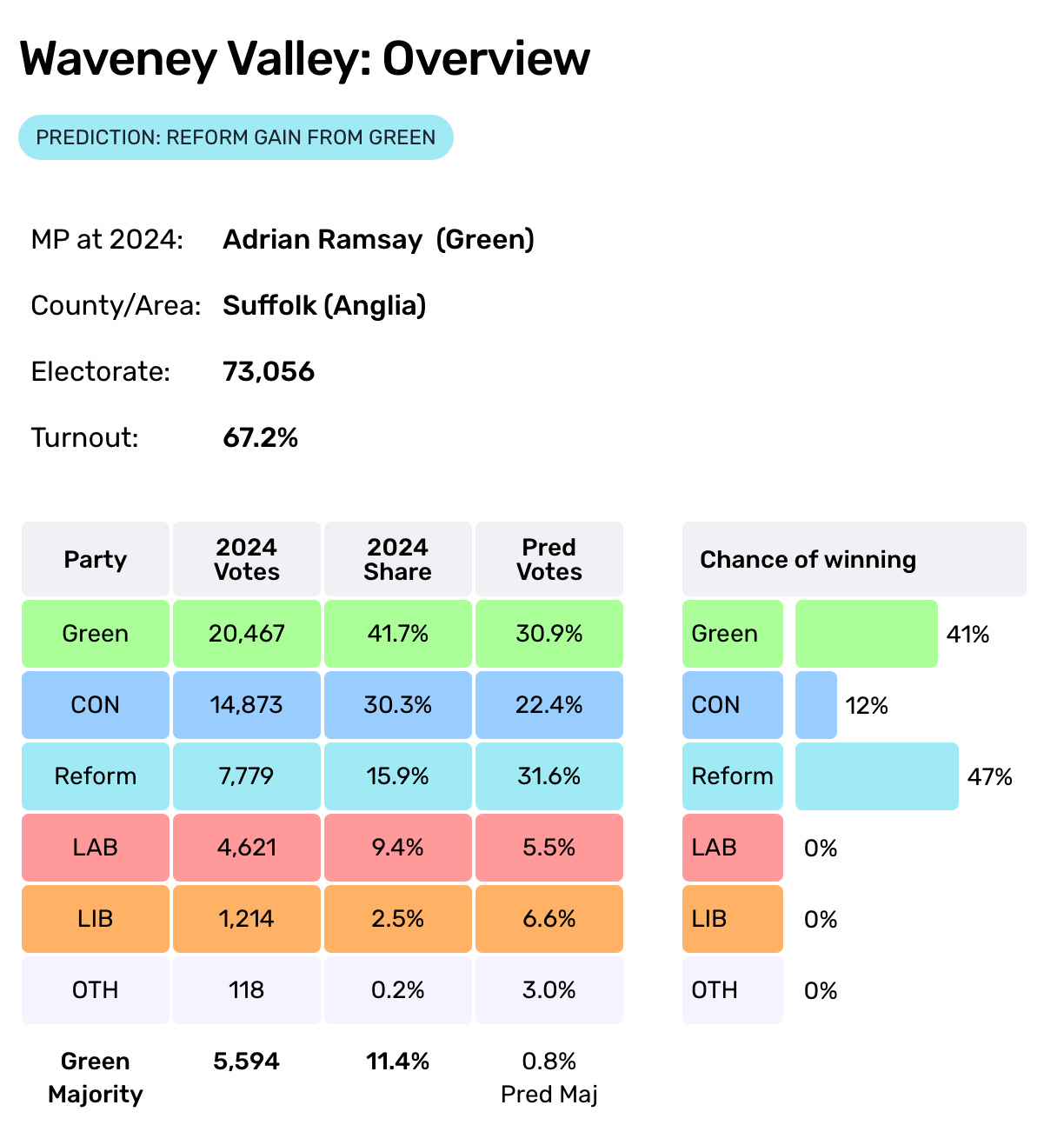 They’ve also got to focus on keeping a firm hold of their current seats—three out of four of which are predicted to be safe—but, the most interesting piece of data from the recent poll is that Adrian Ramsay, former co-leader of the Green Party and main rival to Polanski in this year’s leadership race, is predicted to be the latest to fall victim to the Reform party’s surge.