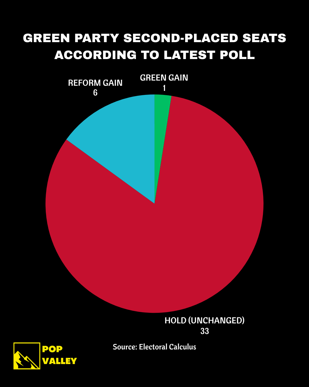 Reform UK’s projected gains in six of the seats where the Green Party came second will presumably have Zack Polanski grimacing.